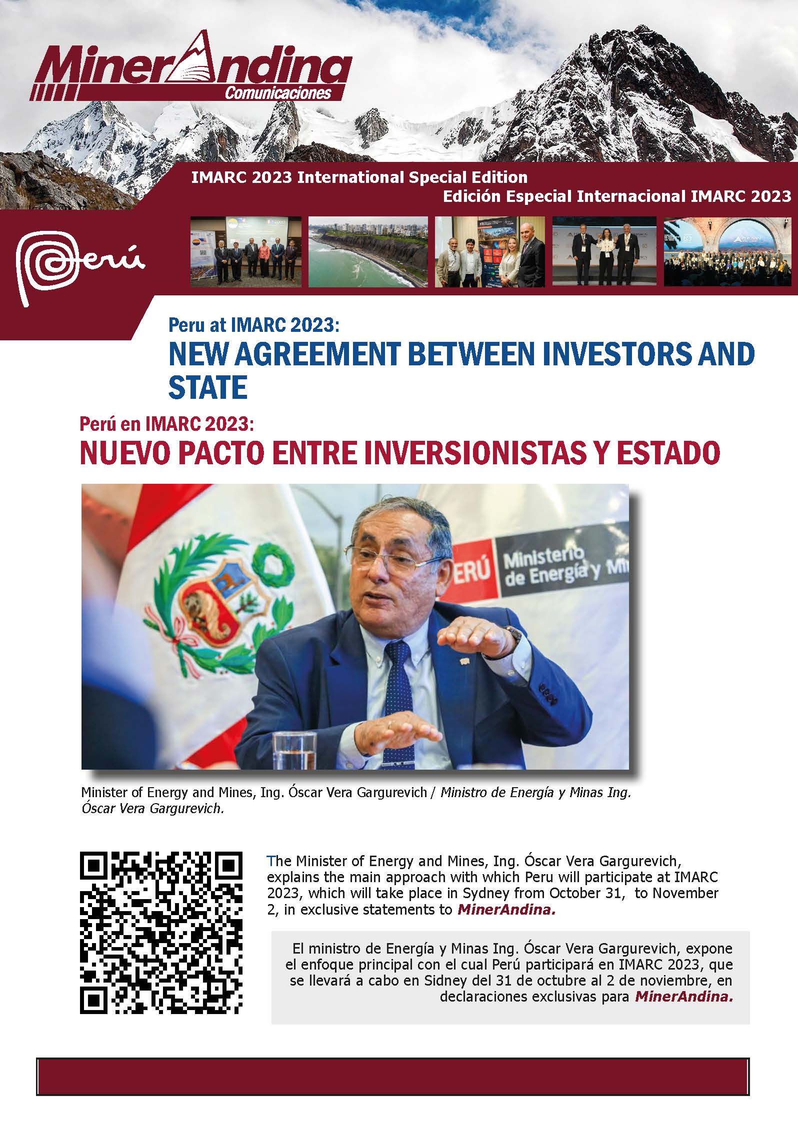 MinerAndina y Sociedad is a printed and bimonthly magazine with a communication focus for development and focused on mining related issues such as environment, sustainable development, social responsibility, other economic sectors, technology and politics. It is an excellent complement to the electronic magazine offering a vision of the environment where the mining activity is carried out.