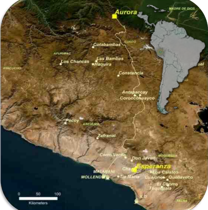 (12-03-2025) DLP Resources Inc. (TSX-V: DLP; OTCQB: DLPRF), Cranbrook, empresa exploradora por metales básicos y cobalto que opera en Perú y Canadá, anunció más de 1,000 Mt en recursos inferidos para su proyecto de cobre-molibdeno Aurora, ubicado en el departamento de Cusco.