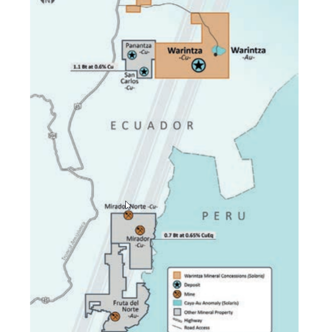 (14-08-2020) Solaris Resources Inc. (TSX-V: SLS), Canadá, una exploradora que destaca en Ecuador por la calidad del relacionamiento alcanzado con indígenas shuar de la Amazonía de ese país, informó que su primer pozo en el proyecto Warintza atravesó 567 metros con una ley de 1% de cobre equivalente.