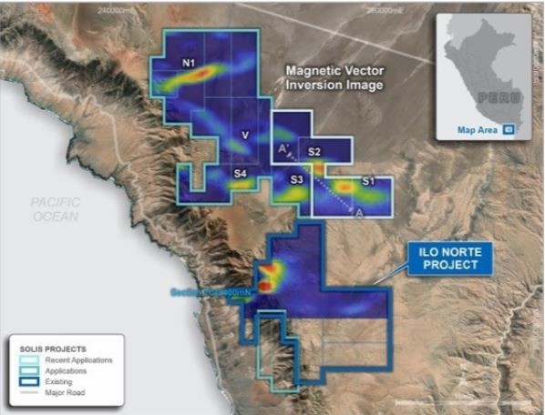 Además de la finalización del levantamiento, y como se anunció previamente, Solis ha solicitado 3,700 hectáreas de terreno altamente prospectivo en la región de Ilo Norte y también comprobando nuevas anomalías tanto en Ilo Norte como en Ilo Este.